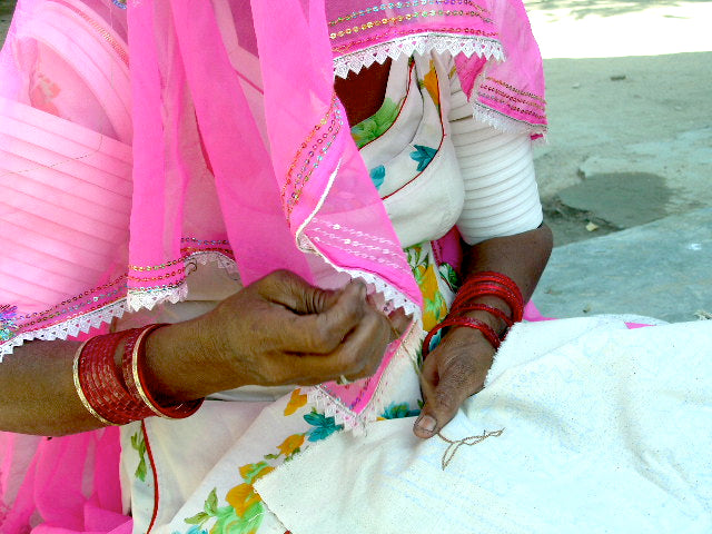 Appliqué is an ancient technique of creating beautiful and decorative items with cut pieces of fabric. Pieced and appliquéd household items are sewn by women for their dowries. Each region in India has its own particular aesthetic.